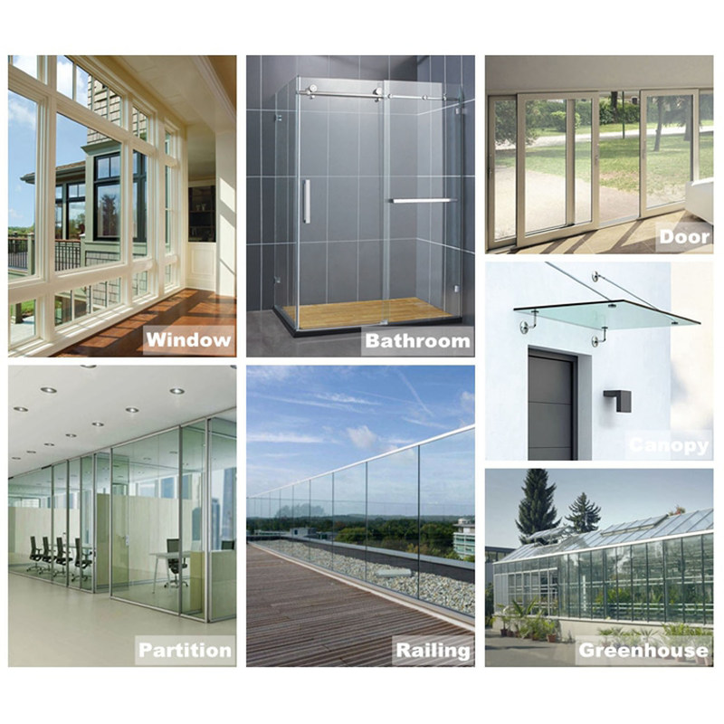 2Puerta: La mayoría de las estructuras de vidrio independientes sin marco deben estar hechas de vidrio de seguridad endurecido, siendo las puertas de vidrio el ejemplo más común para puertas residenciales, de oficina, de ducha, etc. |